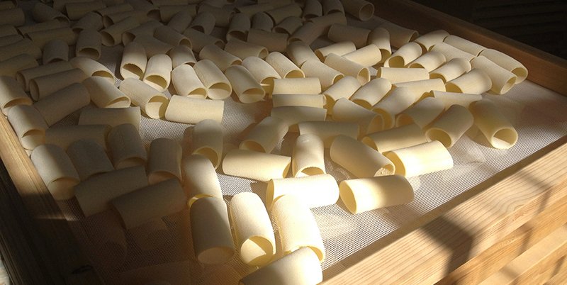 La producción de esta planta artesanal de pasta seca larga es la solución típica para las pequeñas fábricas de pasta que quieren respetar la tradición local produciendo pasta con propiedades organolépticas inalteradas.